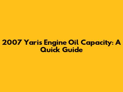 2007 Yaris Engine Oil Capacity: A Quick Guide