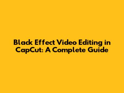 Black Effect Video Editing In CapCut: A Complete Guide