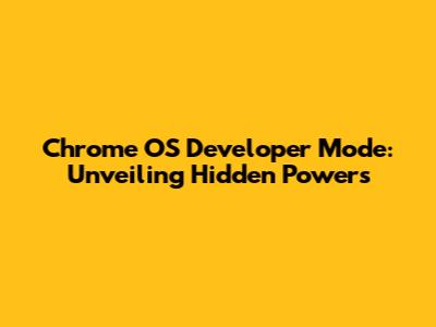Hey guys! Ever wondered how to truly unlock the potential of your Chromebook? Well, one way is by diving into Chrome OS Developer Mode. It's like giving your Chromebook superpowers, letting you tweak and customize things you wouldn't normally be able to. But before you jump in, let's break down what it is, what you can do with it, and the potential risks involved. This is your go-to guide for everything Chrome OS Developer Mode!