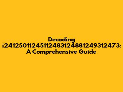 Decoding I24125011245112483124881249312473: A Comprehensive Guide