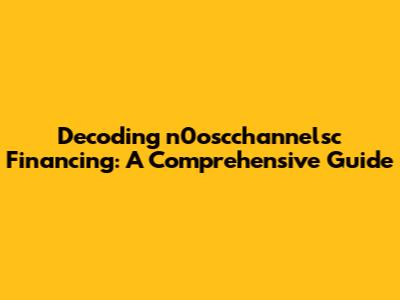 Decoding N0oscchannelsc Financing: A Comprehensive Guide
