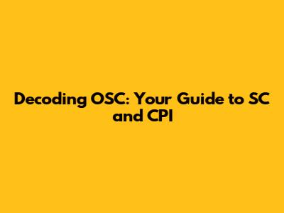 Decoding OSC: Your Guide To SC And CPI