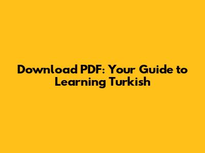 Download PDF: Your Guide To Learning Turkish