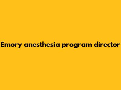 Emory Anesthesia: Program Director Insights