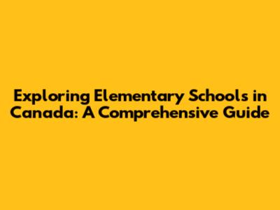 Exploring Elementary Schools In Canada: A Comprehensive Guide