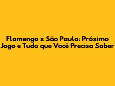 Flamengo X São Paulo: Próximo Jogo E Tudo Que Você Precisa Saber