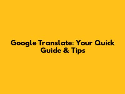 Google Translate: Quick Guide & Tips