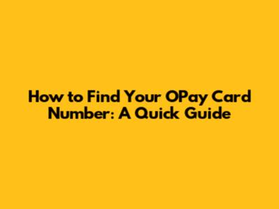 How To Find Your OPay Card Number: A Quick Guide