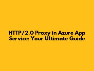 HTTP 2.0 Proxy For Azure App Service: A Comprehensive Guide