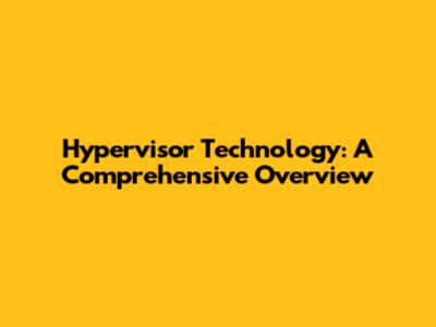 Hypervisor Technology: A Comprehensive Overview