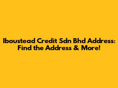 Hey guys! Are you trying to find the Iboustead Credit Sdn Bhd address? You've landed in the right spot! This article will give you all the details you need, plus some extra useful information about Iboustead Credit and what they do. Let's dive right in!