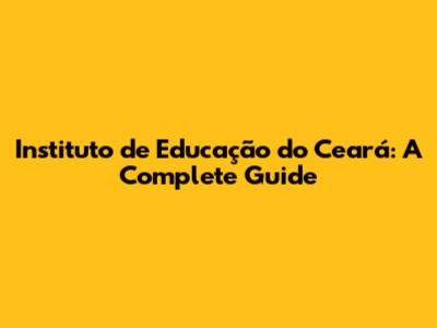Instituto De Educação Do Ceará: A Complete Guide