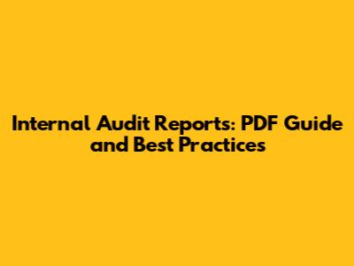 Internal Audit Reports: PDF Guide And Best Practices