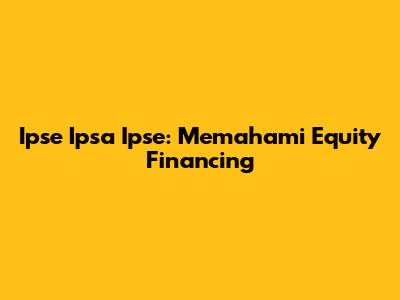 Ipse Ipsa Ipse: Memahami Equity Financing