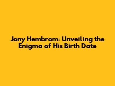 Jony Hembrom: Unveiling The Enigma Of His Birth Date