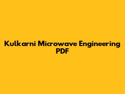 The Kulkarni Microwave Engineering PDF is an invaluable resource for anyone studying or working in the field of microwave engineering. Its comprehensive coverage, clear explanations, and practical examples make it a must-have for students, engineers, and researchers alike. By following the tips outlined in this article, you can make the most of this resource and achieve your goals in microwave engineering. Happy studying, folks!