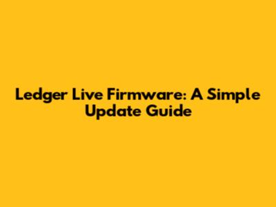 Ledger Live Firmware: A Simple Update Guide