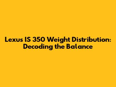 Lexus IS 350 Weight Distribution: Decoding The Balance