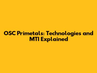 OSC Primetals: Technologies And MTI Explained