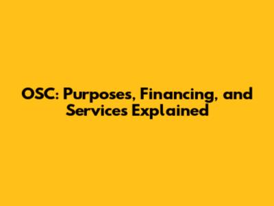 OSC: Purposes, Financing, And Services Explained