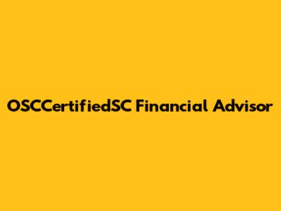 OSCCertifiedSC Financial Advisor: What You Need To Know