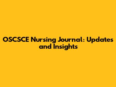 OSCSCE Nursing Journal: Updates And Insights