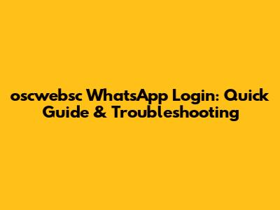 Oscwebsc WhatsApp Login: Quick Guide & Troubleshooting