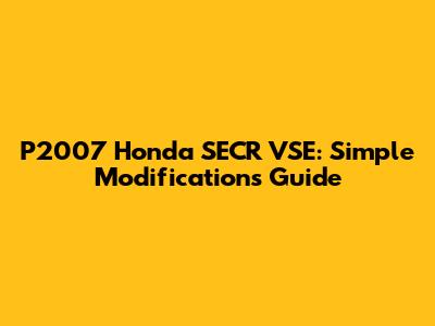 P2007 Honda SECR VSE: Simple Modifications Guide