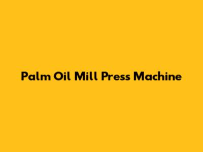 Palm Oil Mill Press Machine: Definition, Types, And Advantages