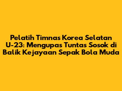 Pelatih Timnas Korea Selatan U-23: Profil, Strategi, Dan Harapan