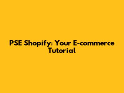 PSE Shopify: Your E-commerce Tutorial