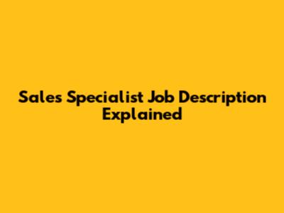 Sales Specialist Job Description Explained