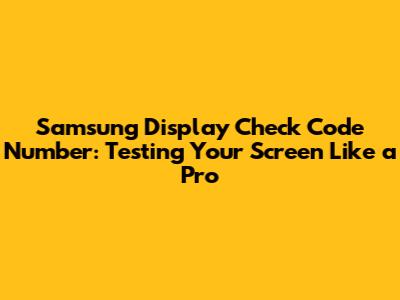 Samsung Display Test: Check Code & Screen Health