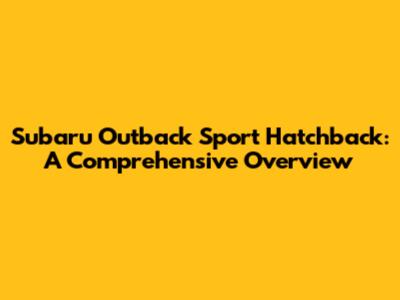 Subaru Outback Sport Hatchback: A Comprehensive Overview