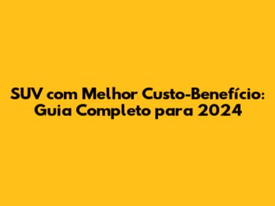 SUV Com Melhor Custo-Benefício: Guia Completo Para 2024