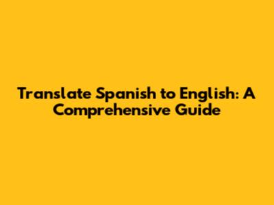 Translate Spanish To English: A Comprehensive Guide