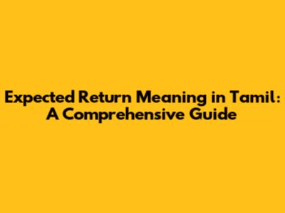 Understanding Expected Return: A Tamil Guide