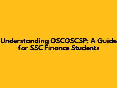 Understanding OSCOSCSP: A Guide For SSC Finance Students