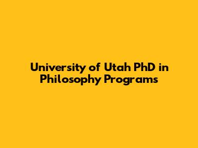 University Of Utah PhD In Philosophy Programs