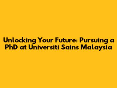 Unlocking Your Future: Pursuing A PhD At Universiti Sains Malaysia