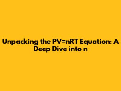 Unpacking The PV=nRT Equation: A Deep Dive Into 'n'