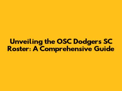 Unveiling The OSC Dodgers SC Roster: A Comprehensive Guide