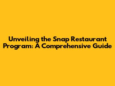 Unveiling The Snap Restaurant Program: A Comprehensive Guide
